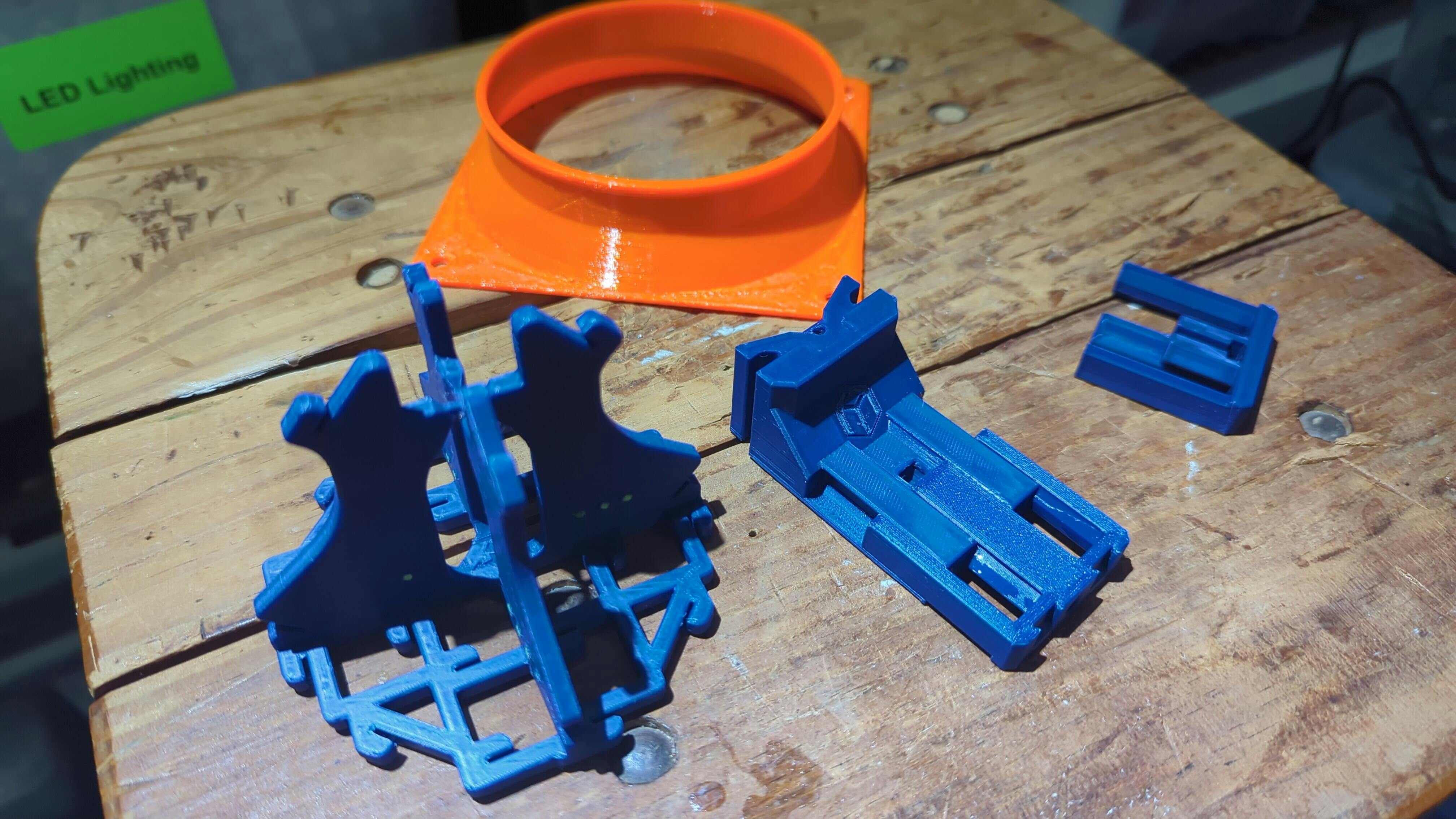 I bought the hardware kit, which provides a link to print the STLs. I had the plastic parts printed and waiting when the hardware arrived. The main parts I printed with Polymaker PETG-CF, highlight colour parts eSun PLA+ blue, and the iron grip DREMC grey ASA.