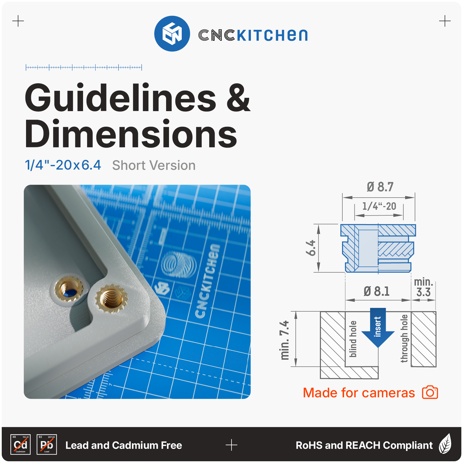 1/4"-20 x 6.4mm Heat Set Inserts - 20 pieces