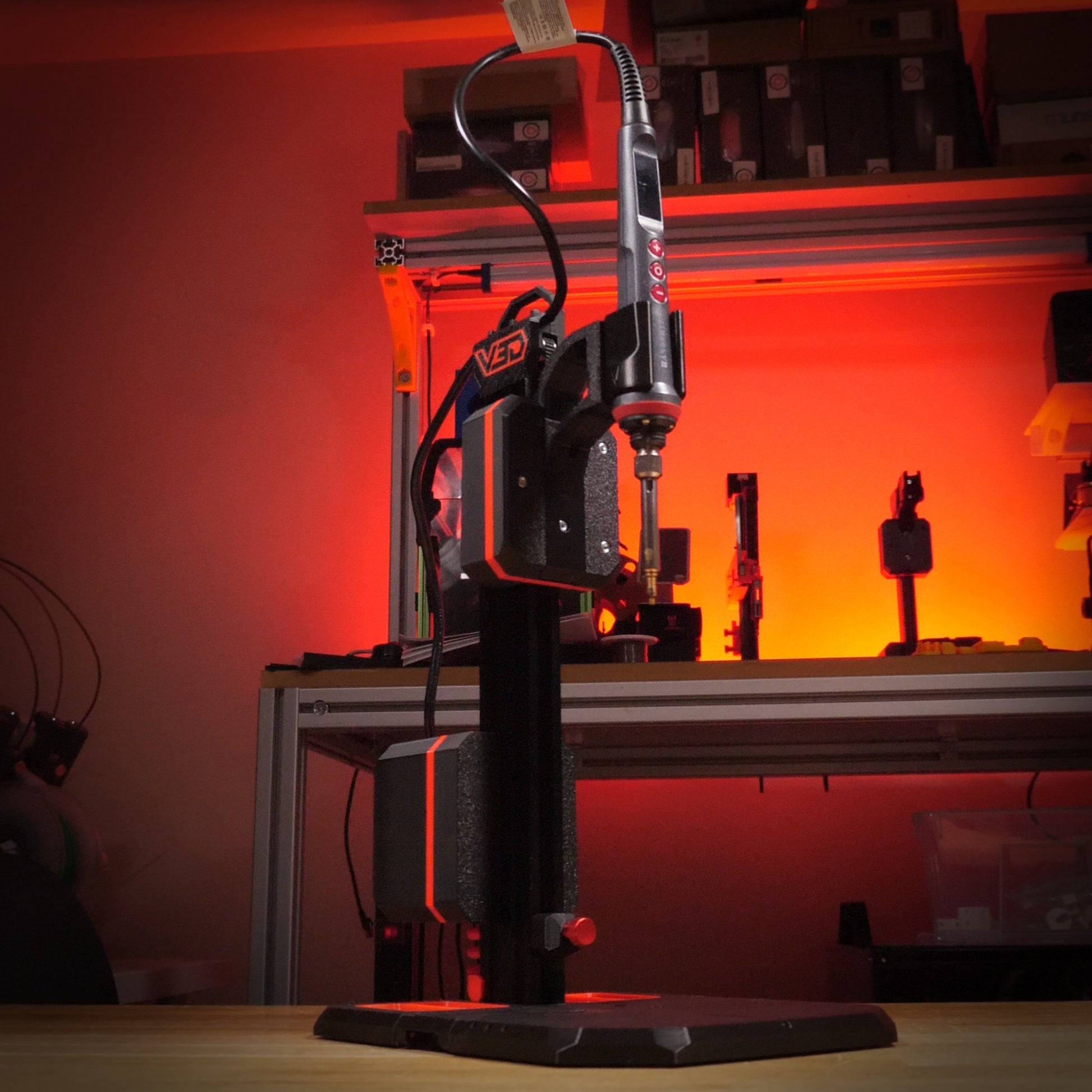 For the soldering iron I recommend the Handskit 927 with the CNC Kitchen M900 Tips. The 927 is great as it doesn't require a separate base station, is adjustable in small increments, has a built in display and sleeps after a short period just in case you leave it on by accident. The correct size tips ensure your iron won't get stuck on the inserts too, a must have.