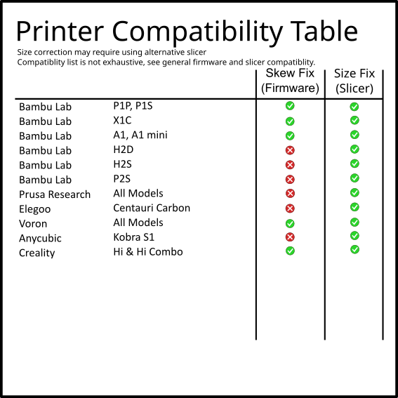 * Bambu Firmware has built in iterative skew calculation so is enabled without the features of this calculator