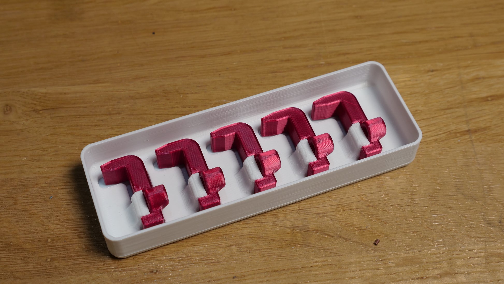 If you choose to make the magnet version then you will also need six 6x3mm (6 mm diameter, 3mm depth) neodymium magnets and five m3 hex nuts for the tray. I recommend printing the magnet version in ABS as this provides appropriate flex and layer adhesion to press fit the magnets without splitting the print.